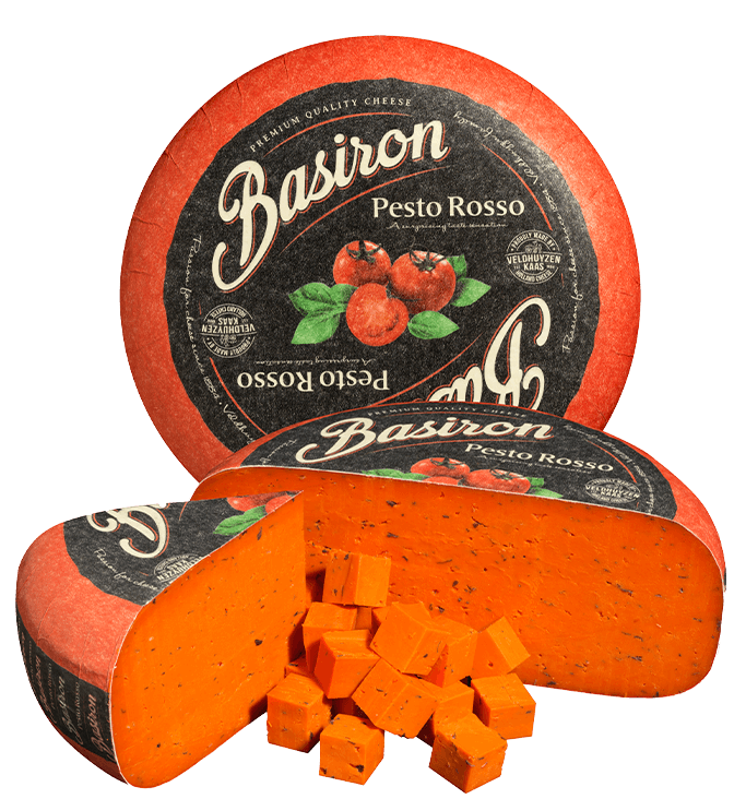 Basiron Pesto Rosso is full of delicious tomatoes and Italian herbs. This creates a surprising flavour that is perfect for your cheese board. Last but not least, it is a feast for the eyes as well!
