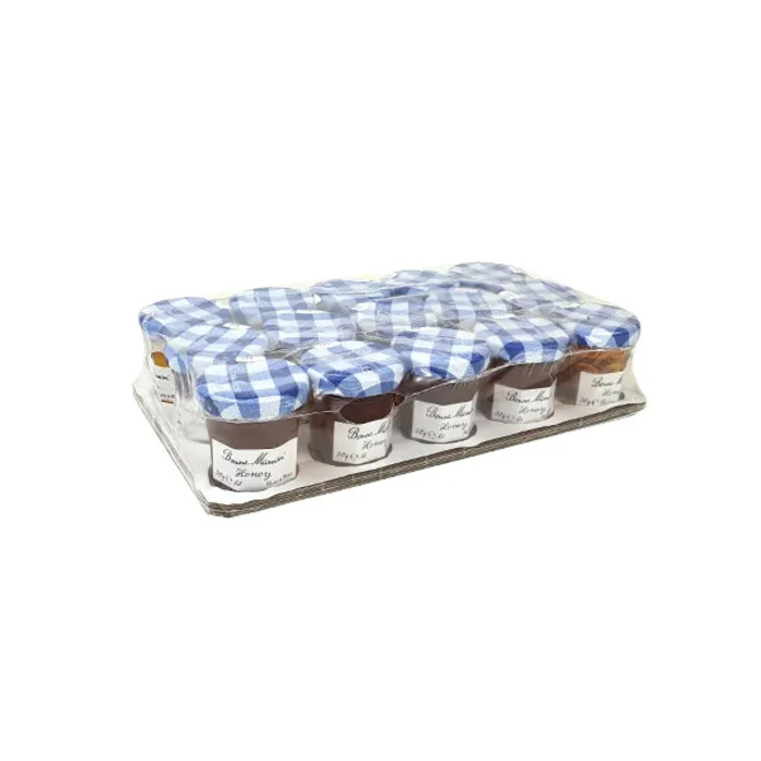 100% honey. Supplied in Bonne Maman branded jar with blue & white gingham lid. Total sugars content: 80g per 100g
