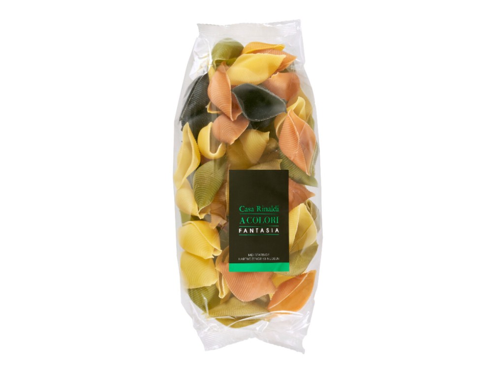 Our conchiglioni fantasia are a mix of colors and tastes reminiscent of the Mediterranean. The scent and flavor are delicate and typical of its ingredients: spinach, oregano, turmeric, tomato, red beet and squid ink.