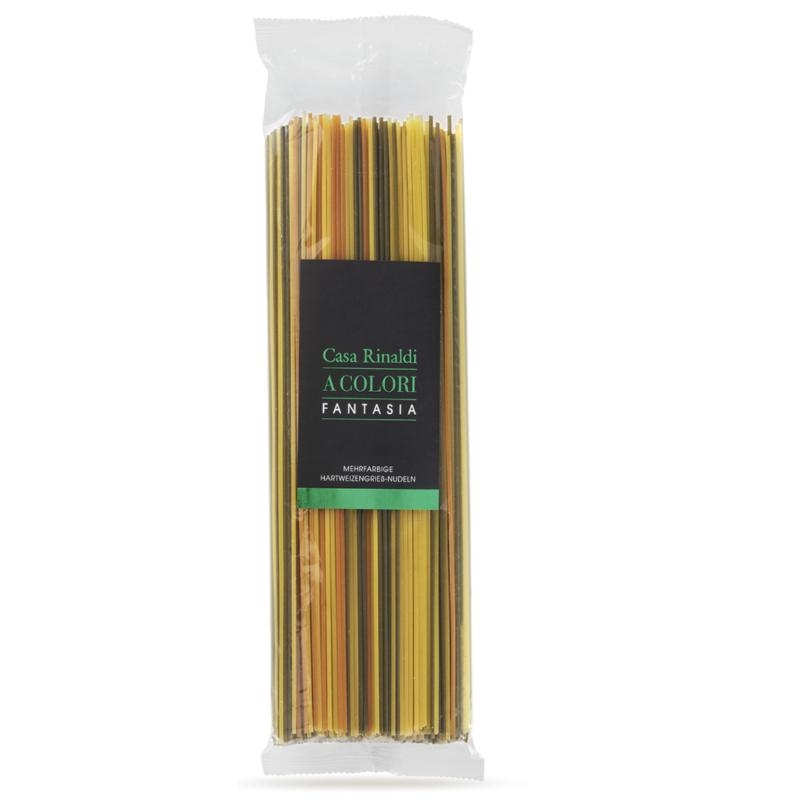 Introducing Casa Rinaldi Tricolor Spaghetti – a delightful 500g pack of pasta that brings a burst of color to your plate. Made with high-quality durum wheat semolina and infused with natural spinach and tomato extracts, this tricolor spaghetti offers a visual feast along with its delicious taste. Perfect for adding a touch of creativity to your pasta dishes, it pairs beautifully with a variety of sauces and toppings. Whether served with a classic marinara sauce, tossed with olive oil and garlic, or incorporated into a vibrant pasta salad, Casa Rinaldi Tricolor Spaghetti is sure to impress. Elevate your pasta nights with this colorful and flavorful addition to your pantry, crafted with care by Casa Rinaldi for your culinary enjoyment.