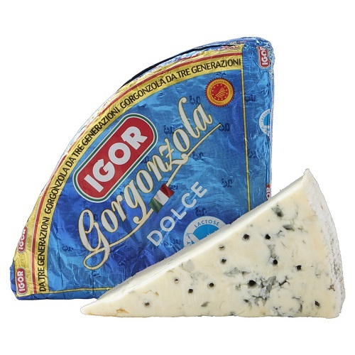 Gorgonzola Dolce has a characteristic sweet taste, creamy texture, light nutty notes and blue veins in the cut.