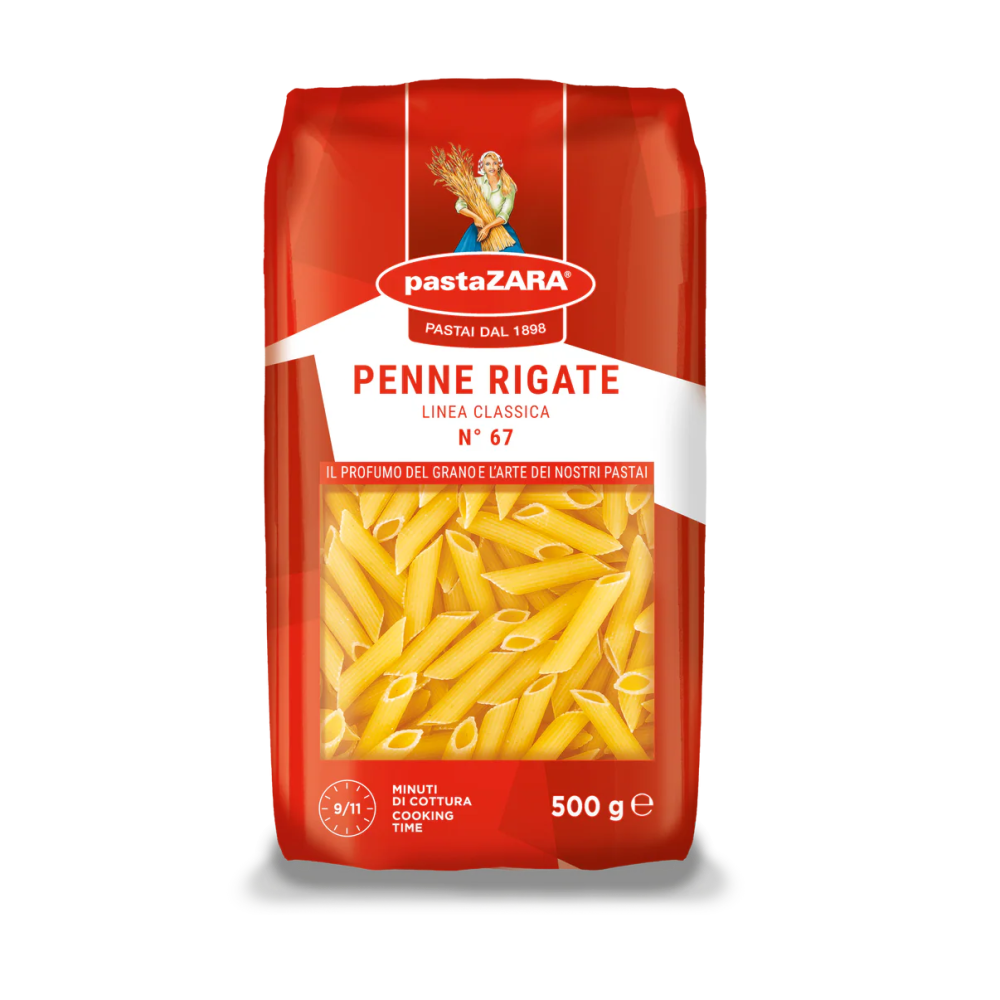 Penne is an extruded type of pasta with cylinder-shaped pieces, their ends cut at a bias. Penne is the plural form of the Italian penna, deriving from Latin penna, and is a cognate of the English word pen. When this format was created, it was intended to imitate the then-ubiquitous fountain pen\'s steel nibs