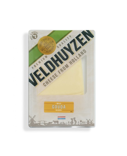 Veldhuyzen Gouda Cheese slices are made of accessible and premium mild gouda cheese from Holland. This cheese is young/mild of age with a maturation period of 4 weeks.